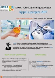 L’ARSLA soutient la recherche sur la Sclérose Latérale Amyotrophique depuis sa création en 1985 : 170 projets ont été soutenus pour un montant de 6 millions d’euros. Pour répondre aux besoins des chercheurs d’une façon pertinente et efficace, l’ARSLA renouvelle son appel à projets scientifique et médical en 2017. Pour candidater