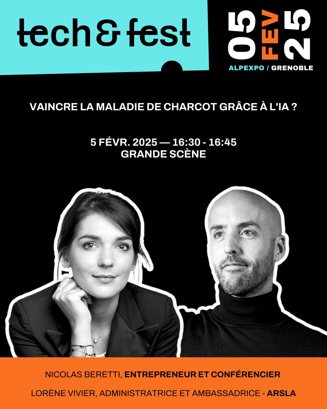 Le 5 novembre, Lorène Vivier, Nicolas Beretti et Sabine Turgeman, Directrice Générale de l’ARSLA prendront la parole sur la Grande Scène de Tech&Fest.